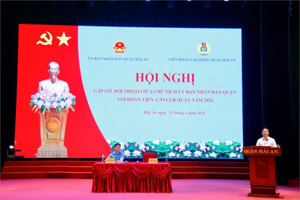 Lắng nghe các ý kiến, đề xuất, kiến nghị của đoàn viên, CNVCLĐ, Chủ tịch UBND quận Hải An Dương Đình Ổn trân trọng cảm ơn toàn bộ các ý kiến, kiến nghị, đề xuất của đoàn viên, CNVCLĐ; đồng thời nhấn mạnh, đây đều là những ý kiến “đúng” và “trúng”, thể hiện tâm huyết, trách nhiệm của đoàn viên, CNVCLĐ trên địa bàn, đồng chí đã ghi nhận, tiếp thu và trực tiếp giải đáp những ý kiến, kiến nghị thuộc thẩm quyền. Với những kiến nghị, đề xuất thuộc về cơ chế, chính sách và thẩm quyền của Thành phố, Trung ương lãnh đạo quận tiếp thu và sẽ đề xuất với các cơ quan liên quan.