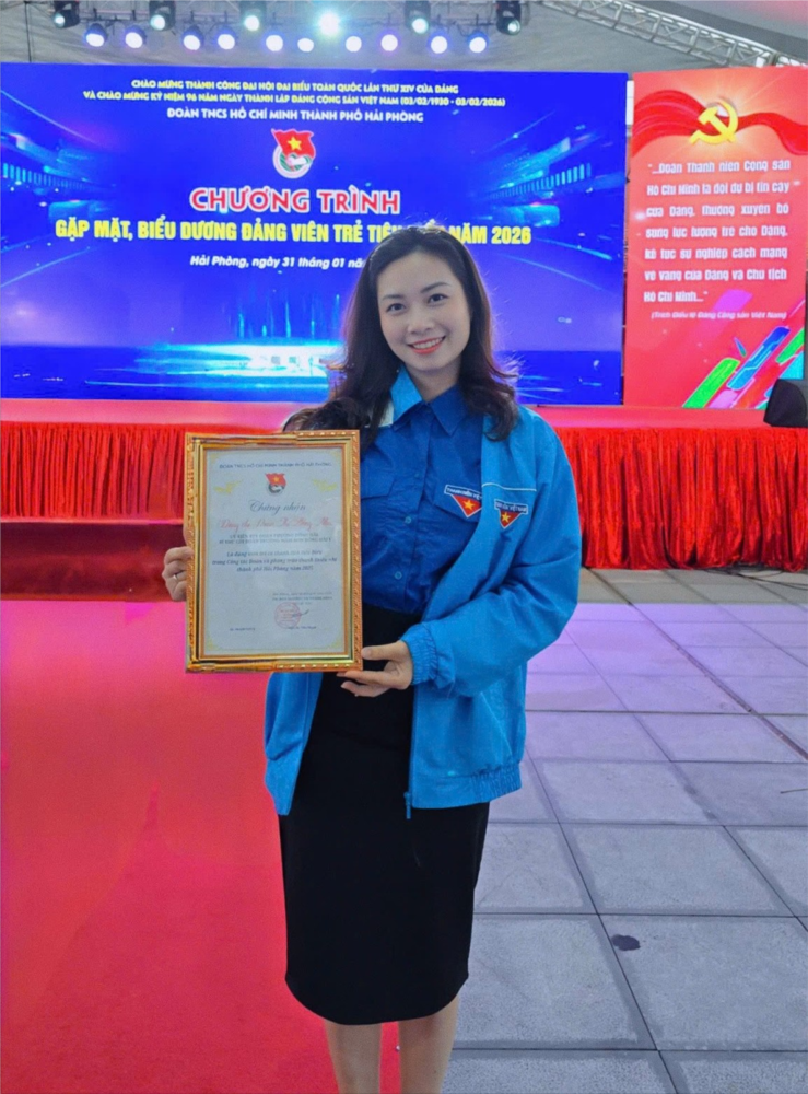 Chi đoàn trường Mầm non Đông Hải 1 nhiều năm liền được đánh giá là đơn vị hoàn thành xuất sắc nhiệm vụ. Cá nhân đồng chí được BCH Đoàn quận Hải An trao giấy khen đã có thành tích xuất sắc trong công tác Đoàn và phòng trào thanh thiếu nhi nhiệm kỳ 2017 - 2022; được BCH Thành đoàn Hải Phòng trao bằng khen đã có thành tích xuất sắc trong công tác Đoàn và phòng trào thanh thiếu nhi năm 2023, 2025; đồng chí đã được biểu dương tại Chương trình “Gặp mặt, biểu dương Đảng viên trẻ tiêu biểu năm 2026” do Thành đoàn Hải Phòng tổ chức vào ngày 31/1/2026.