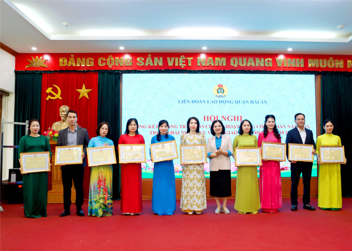 Chiều ngày 17/01/2024, LĐLĐ quận Hải An tổ chức Hội nghị tổng kết phong trào CNVCLĐ và hoạt động Công đoàn năm 2023, triển khai nhiệm vụ trọng tâm, ký giao ước thi đua năm 2024. Hội nghị vinh dự được đón đồng chí Lê Thị Thanh Thuỷ - Phó Chủ tịch LĐLĐ thành phố; đồng chí Nguyễn Anh Tuấn - Phó Bí thư Thường trực Quận uỷ về dự và phát biểu chỉ đạo hội nghị.