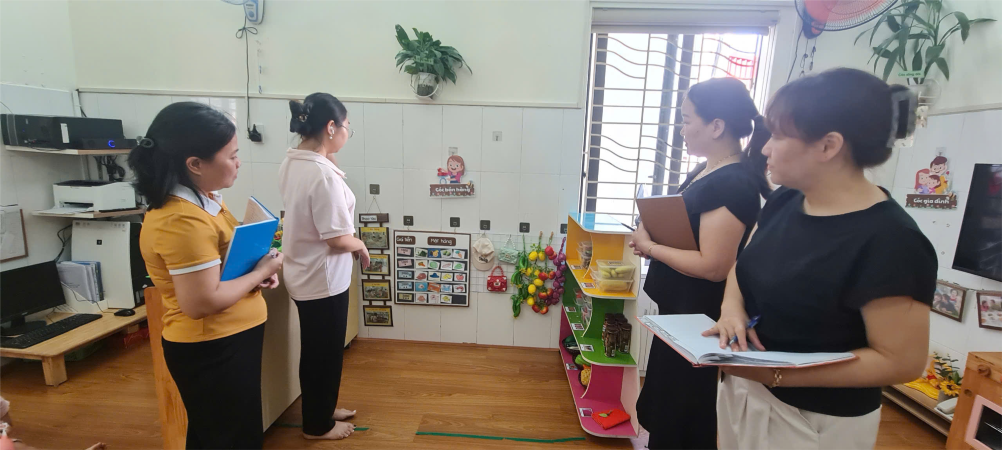 Với nỗ lực tìm tòi và làm việc bằng cả trí tuệ và công sức của mình, các giáo viên đã thiết kế được môi trường giáo dục trong lớp học với nhiều ý tưởng và hình thức khác nhau theo hướng lấy trẻ làm trung tâm, bố trí các góc chơi phù hợp và thiết kế các bài tập cũng như trang bị các học liệu mở gây được hứng thú cho trẻ tham gia vào các hoạt động và kích thích tìm tòi khám phá cho trẻ.