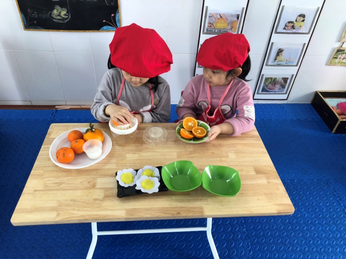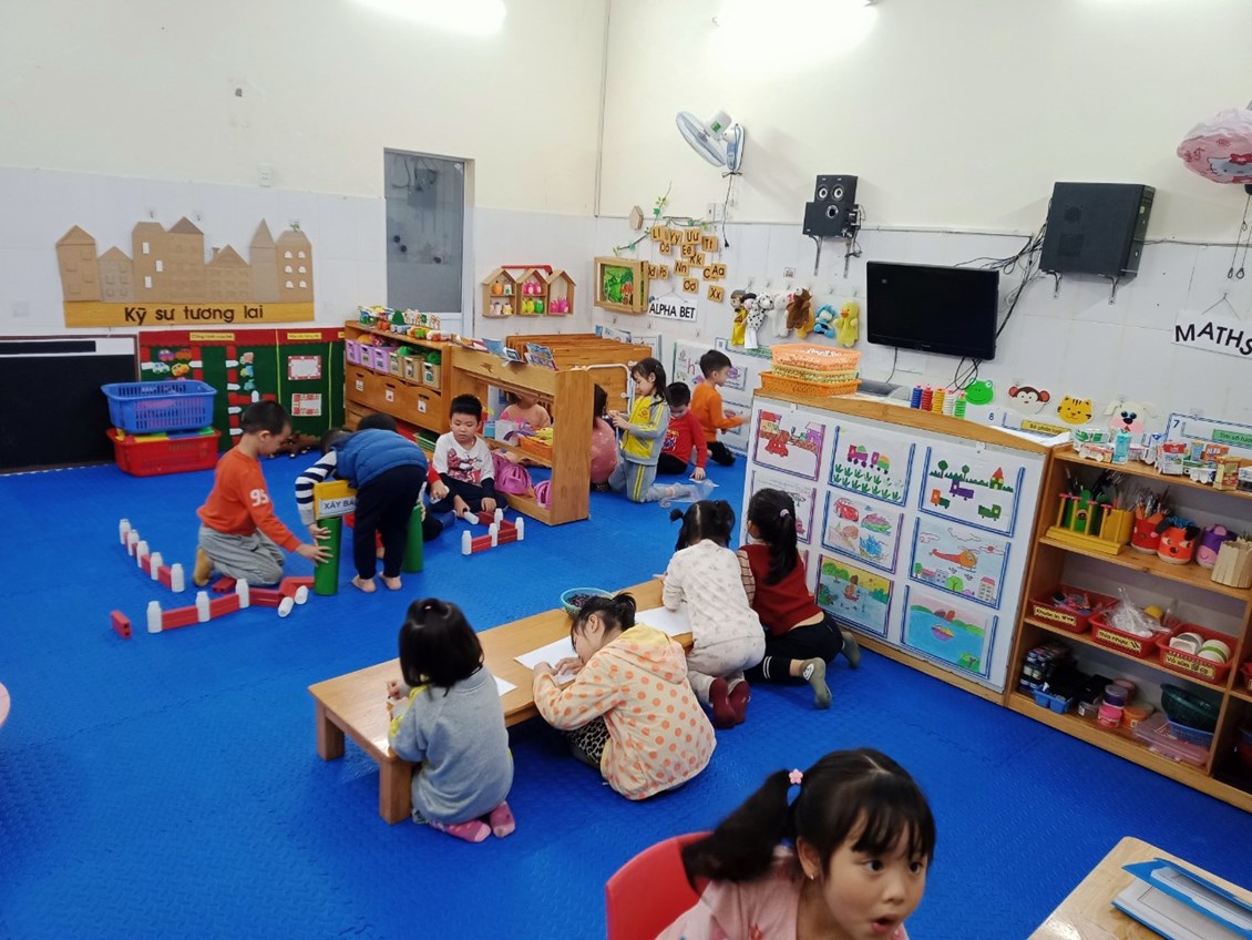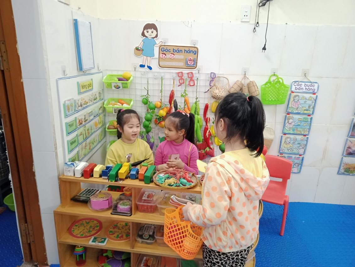 Cùng quan sát các bé lớp mẫu giáo 5-6 tuổi A5 tham gia vào hoạt động góc, chúng ta sẽ thấy rõ hơn một “ xã hội người lớn thu nhỏ” được miêu tả một cách sinh động ,sáng tạo và đầy chất trẻ thơ.