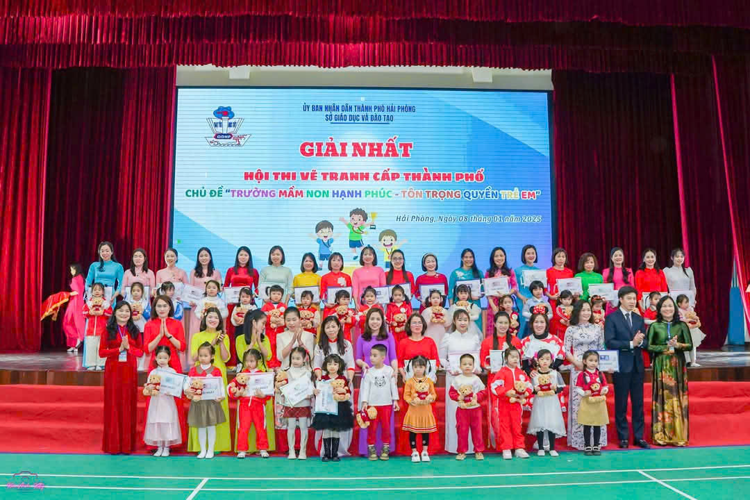 Chúc mừng nhà trường cùng các bé đã đạt giải cao trong cuộc thi vẽ tranh “Trường học hạnh phúc tôn trọng quyền trẻ em” cấp Thành phố với các giải sau: