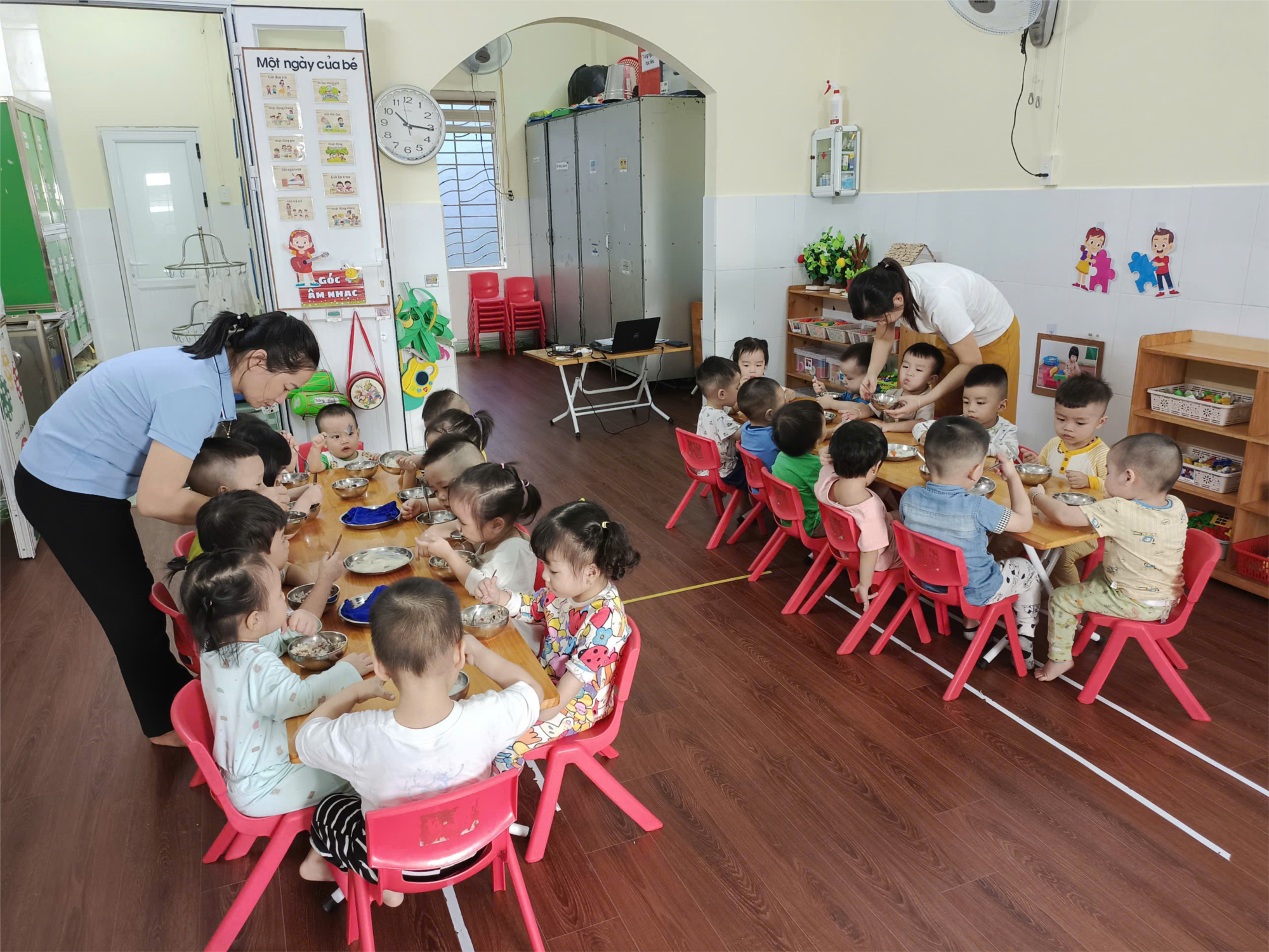 Sau đây là hình ảnh bữa ăn hạnh phúc của trẻ tại các lớp: