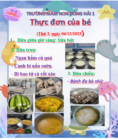 Dinh dưỡng đóng vai trò quan trọng ảnh hưởng tới sự phát triển của trẻ về mặt thể chất và trí tuệ. Chính vì vậy mà việc xây dựng thực đơn của trẻ trong năm học 2023-2024 luôn được Ban giám hiệu trường mầm non Đông Hải 1 – Hải An – Hải Phòng đặc biệt quan tâm.
