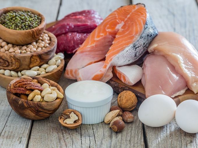 Cá, thịt ức gà, các loại đậu là nguồn cung cấp protein dồi dào cho chế độ ăn.