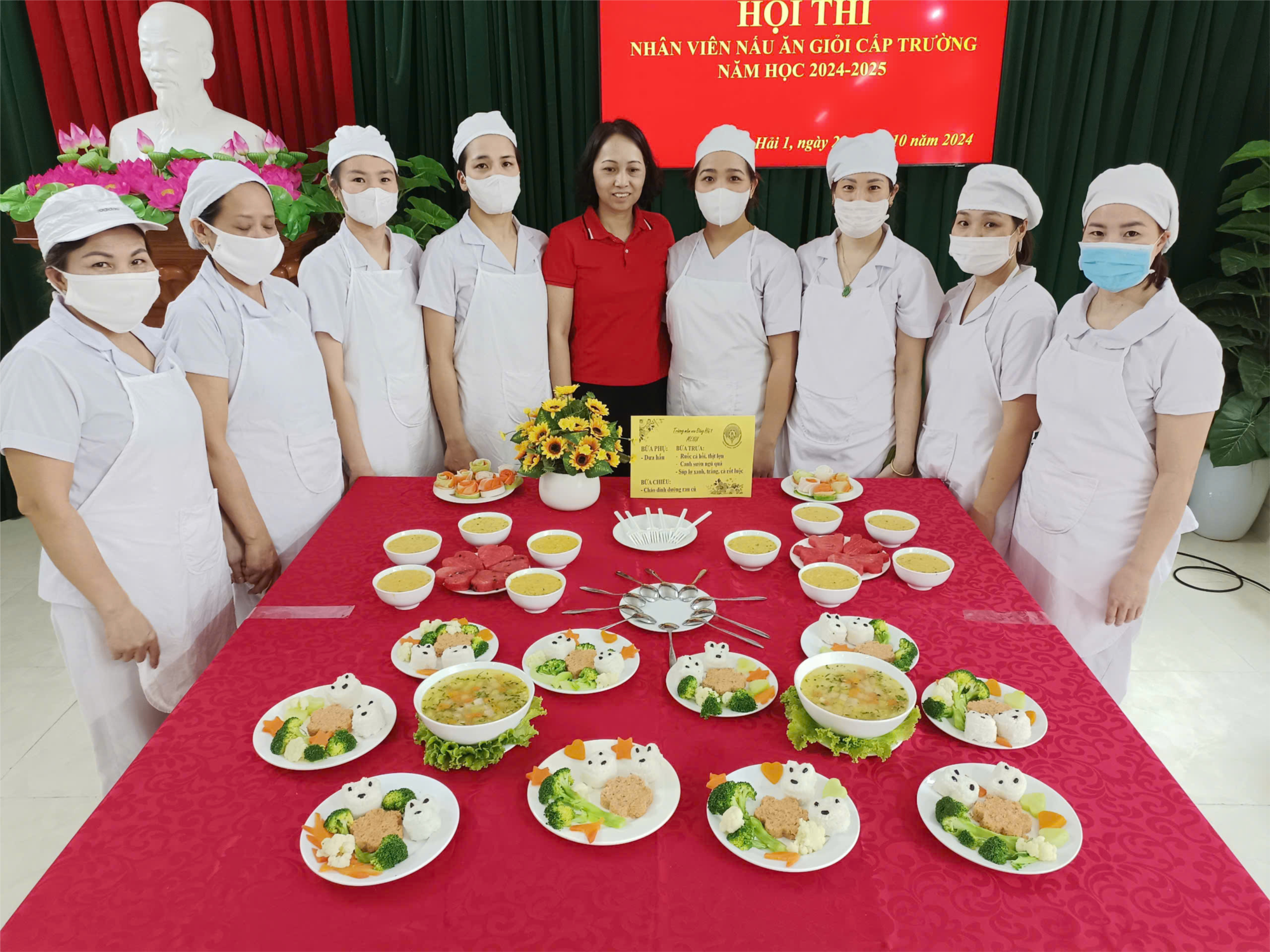 Hội thi nhân viên nấu ăn giỏi cấp trường được tổ chức không chỉ nhằm mục đích tôn vinh những cô nuôi giỏi mà còn tạo cơ hội cho nhân viên nuôi dưỡng được giao lưu học hỏi chia sẻ kinh nghiệm đồng thời phát huy sự sáng tạo trong xây dựng thực đơn khẩu phần, chế biến món ăn phù hợp lứa tuổi của trẻ. Với sự phối hợp nhuần nhuyễn, sắp xếp khoa học, kỹ năng thuần thục, các cô đã hoàn thành từ khâu chế biến ban đầu, hoàn thành sản phẩm và bày trí đẹp mắt, mang đến Hội thi những món ăn ngon, đủ dinh dưỡng và hấp dẫn. Kết quả đó chính là niềm hạnh phúc, tự hào của BGH, nhân viên nhà trường đã có cơ hội để thể hiện kỹ thuật chế biến, tâm huyết và dành trọn niềm yêu thương đối với trẻ thơ, khẳng định được chất lượng chăm sóc, nuôi dưỡng, chú trọng Đề án của trường Mầm non Đông Hải 1.