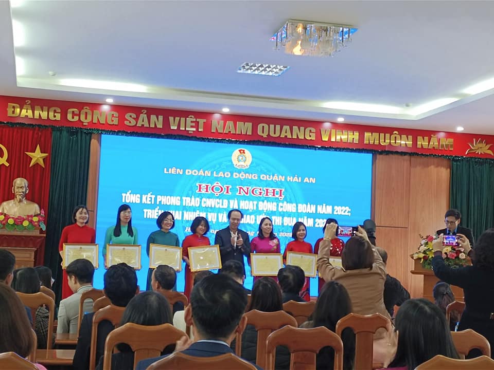 Trường Mầm non Đông Hải 1 tham gia Hội nghị tổng kết công tác Công đoàn và phong trào CNVCLĐ, biểu dương các tập thể và cá nhân được khen thưởng năm 2022, triển khai nhiệm vụ và ký giao ước thi đua năm 2023.